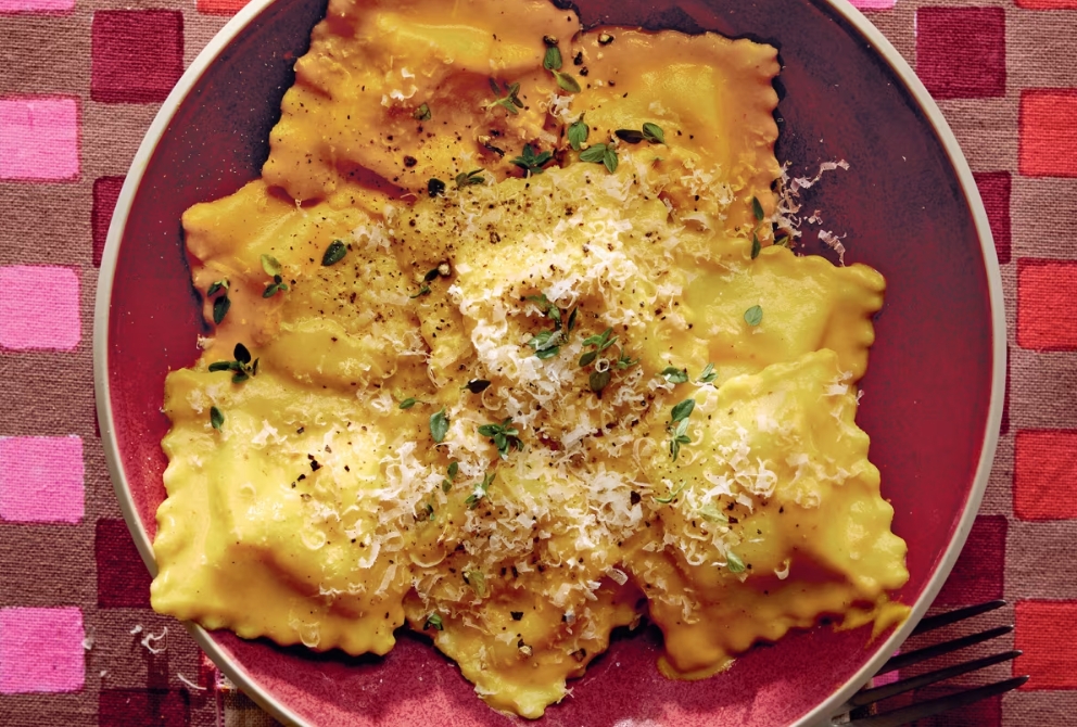 “This very dish might be the origin of my obsession with pumpkin spice,” Pelosi recalled in his book. “I had to make my own version of this to process. This smooth pumpkin sauce builds layers of flavor with garlic, thyme, and white wine, plus a little kick from red pepper flakes.”